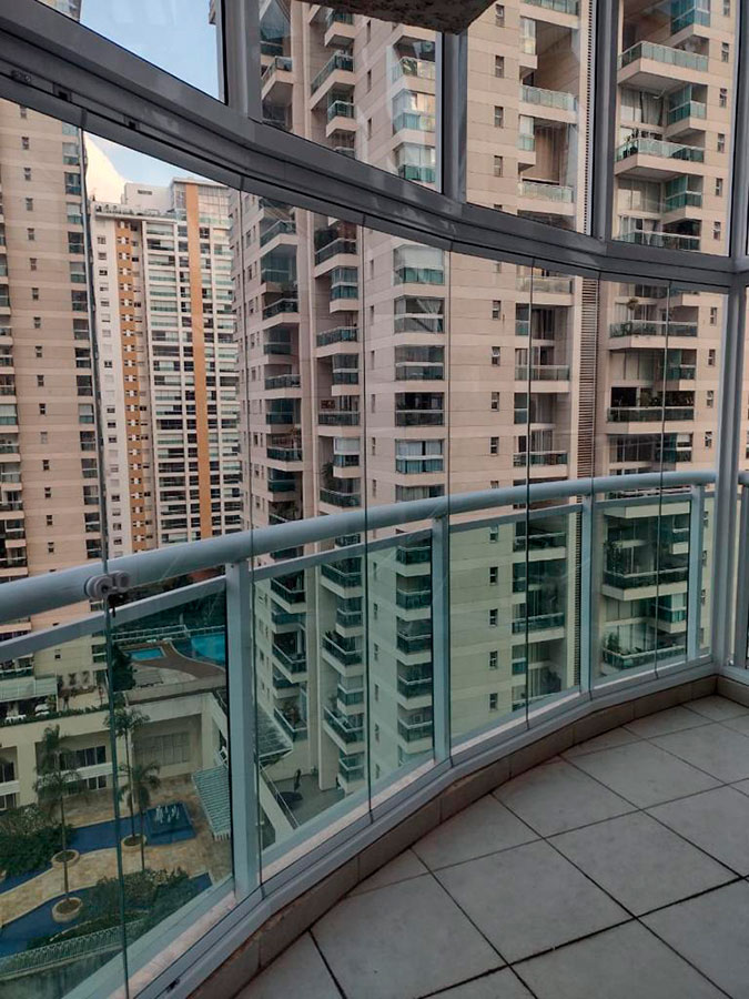 Envidraçamento de Sacada cria uma Cortina de Vidro que protege o ambiente dos ventos e intempéries.